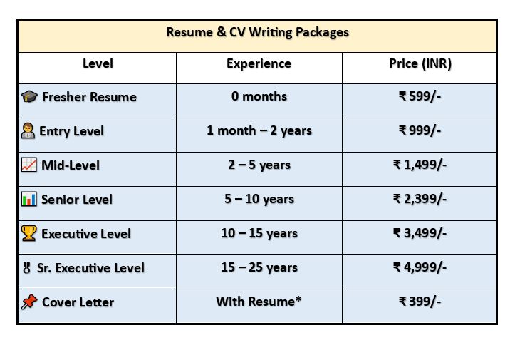 ✔ Resumes for All Career Levels (Freshers to Top Executives)